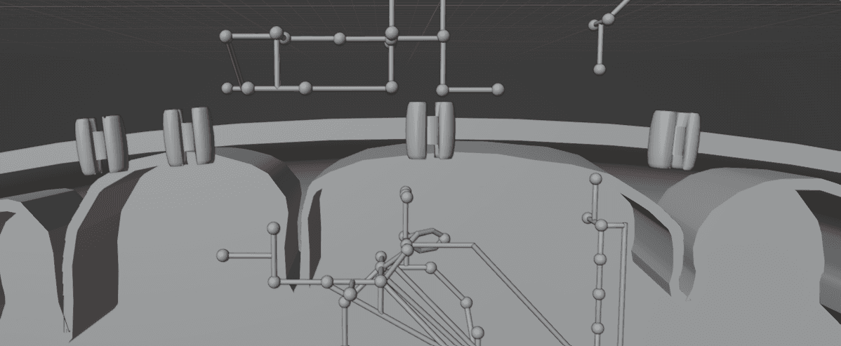 In the initial stages of this project the nodes and edges on the network model in Unity were misaligned creating small gaps in the network. After some inquiry, it was found that this alignment issue stemmed from the Blender model. To fix this issue, we went into the existing Blender file and edited the network to have more a seamless connection and create a more polished product. We also made changes to the curved edges to have straight more geometric lines to allow for a more practical implementation of the bidirectional arrow sleeves on the edges.